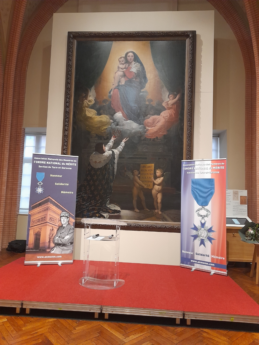 Chère Florence, je vous remercie sincèrement, en tant que conservatrice du Musée Ingres, de m’accueillir dans ce lieu chargé d’histoire et de beauté. Au pied de ce magnifique tableau peint par Ingres Le vœu de Louis XIII, cette distinction prend une signification encore plus forte et émouvante. Ce cadre illustre parfaitement les valeurs qui ont guidé mon parcours : le travail, la transmission, l’art et l’engagement.